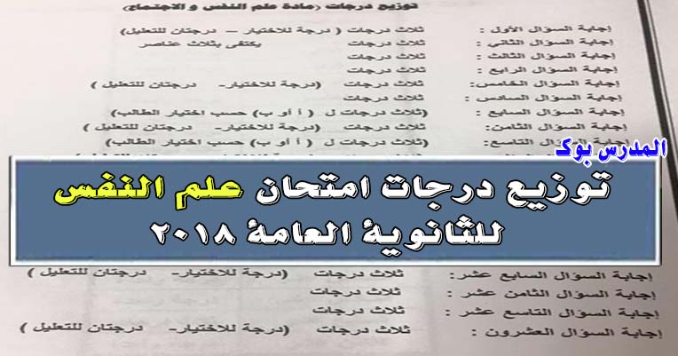 توزيع درجات مادة علم النفس والاجتماع 2018 للثانوية العامة